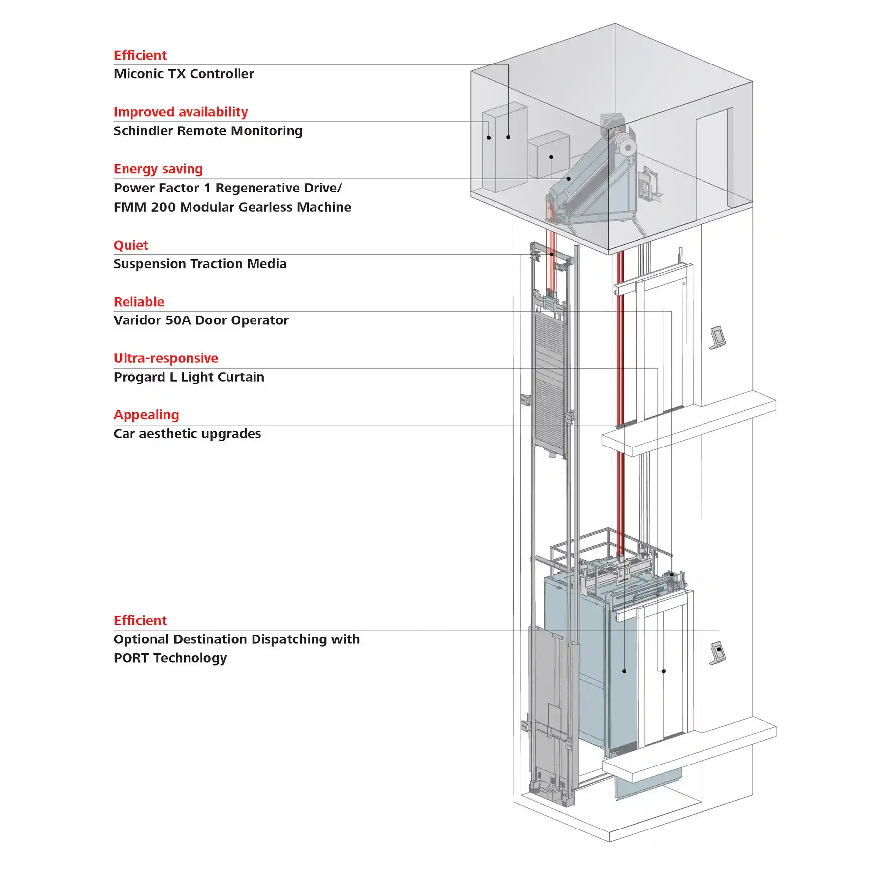 - Motor : High-efficiency gearless traction motor with low RPM for quiet operation